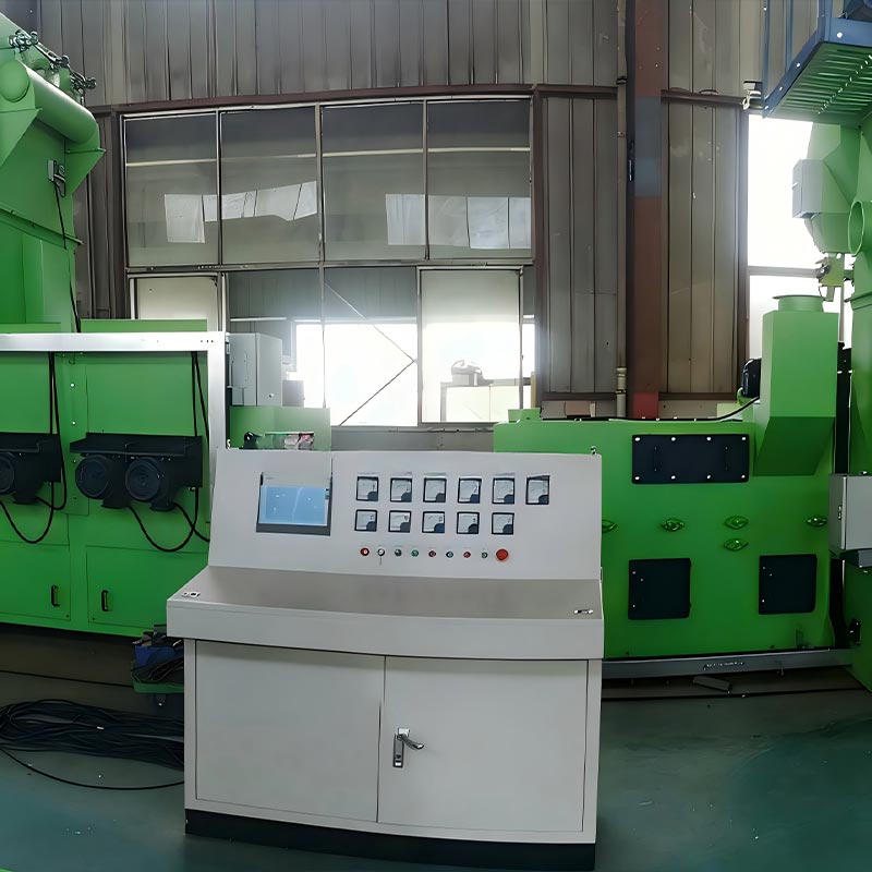 Τα τούβλα εισέρχονται στον θάλαμο της αμμοβολής μέσω του συστήματος μεταφοράς. Ο τροχός πυροβολισμού προβάλλει λειαντικό στο ύψος επιταχύνετε στην επιφάνεια του τούβλου, αφαιρώντας τις ακαθαρσίες και σχηματίζοντας μια τραχιά επιφάνεια. Μετά τον διαχωρισμό, το λειαντικό είναι ανακυκλώνεται και η σκόνη συλλέγεται και υποβάλλεται σε επεξεργασία, ολοκληρώνοντας ολόκληρη τη ροή επεξεργασίας.